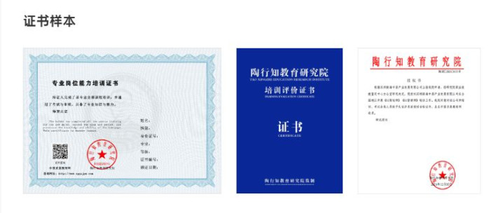 教育认证 :陶行知教育研究院颁发工程师资格证书,录入教育部教培平台,获200+企业认可